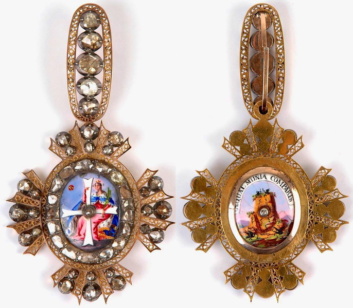 Единственный португальский женский орден учредил будущий король Жуан VI, в то время принц-регент при душевнобольной матери Марии I. Орден носит имя королевы Изабеллы, жившей в XIII–XIV веках и причисленной к лику святых за помощь беднякам. На медальоне изображено, как Изабелла (кстати, внучатая племянница Елизаветы Тюрингской) протягивает хлеб нищему.