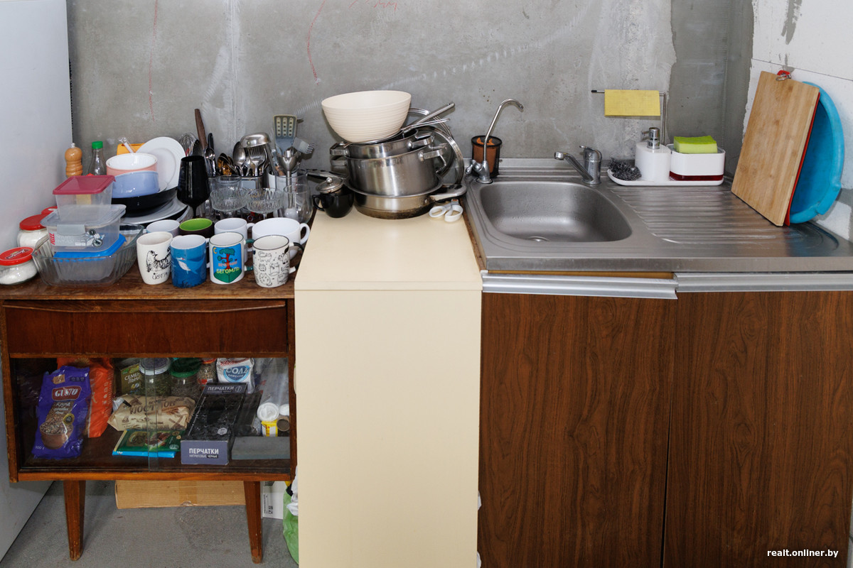 — Раковина здесь появилась не сразу, и мне приходилось постоянно бегать в туалет, чтобы помыть посуду или набрать воду, — жалуется девушка. — Сейчас уже все окей. Главное неудобство в том, что все выглядит достаточно неэстетично, но с этим можно мириться. Конечно, как и любой хозяйке, мне хочется разложить как следует все кухонные принадлежности, но пока это невозможно. Отсутствие розеток — это тоже значительное неудобство. Мы используем удлинители. Но на данный момент нельзя одновременно включать сразу много техники, так как это выбивает пробки.
