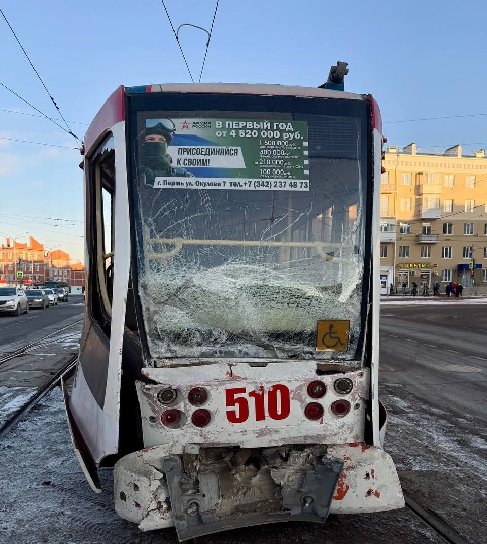 Жёсткое столкновение двух трамваев произошло в Перми.