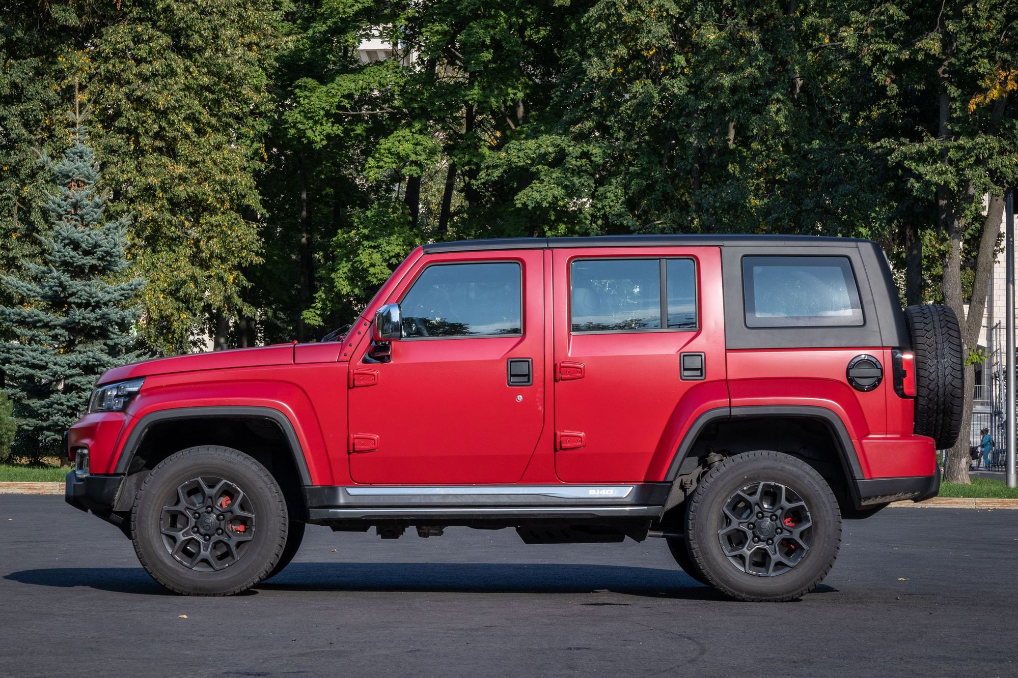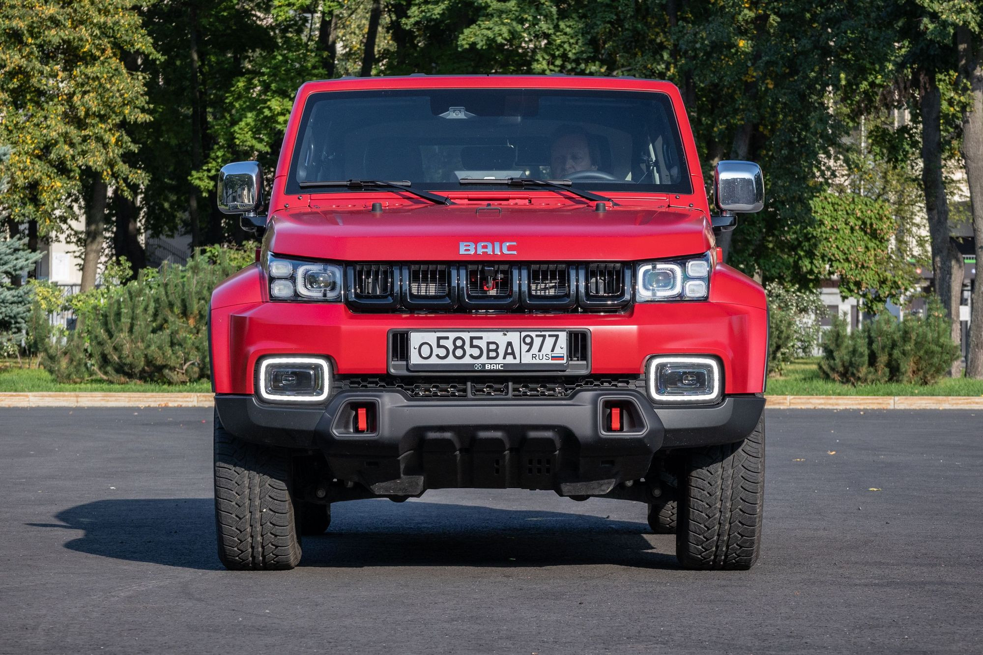Пока покупал канистру с AdBlue на заправке, BAIC успел собрать нескольких неравнодушных к автомобильной технике зевак, и мне пришлось ответить на пару вопросов. Нет, это не лицензионный Джип, это самостоятельная разработка. Да, тут все по-взрослому: полный привод Part-Time с понижайкой. И да, этот шикарный красный цвет – не плод тюнинга, а стоковый матовый металлик.