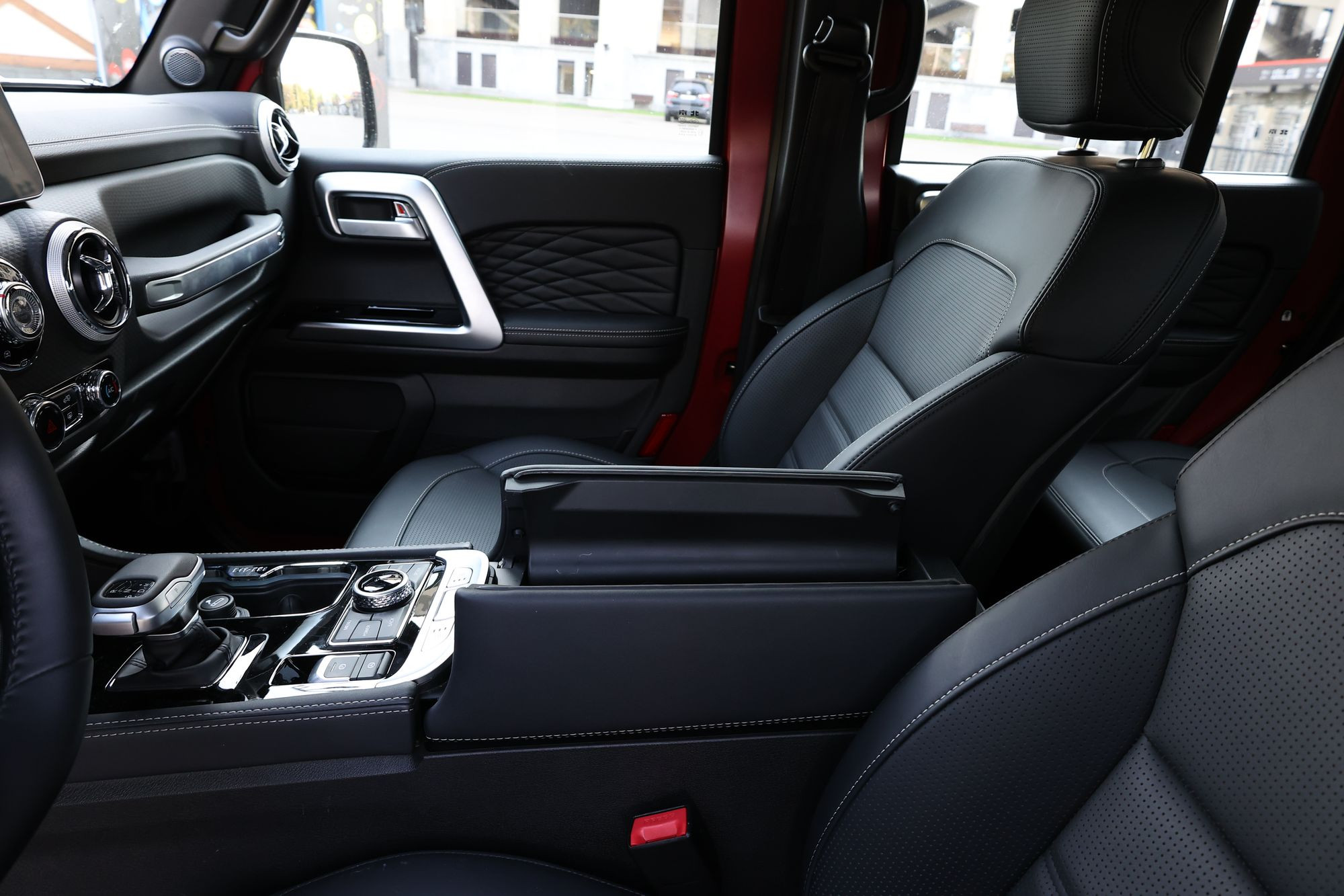 Стилистически интерьер тоже чудесным образом перекликается с американским брендом и смахивает на тот же Wrangler образца 2012 года. Если копнуть чуть глубже, то станет ясно, почему: BJ начали выпускать в Китае в 2013-м году. Впрочем, на восприятии салона это никоим образом не сказывается. По большому счету, настроение тут мало чем отличается от того, что возникает за рулем свежих Джипов.