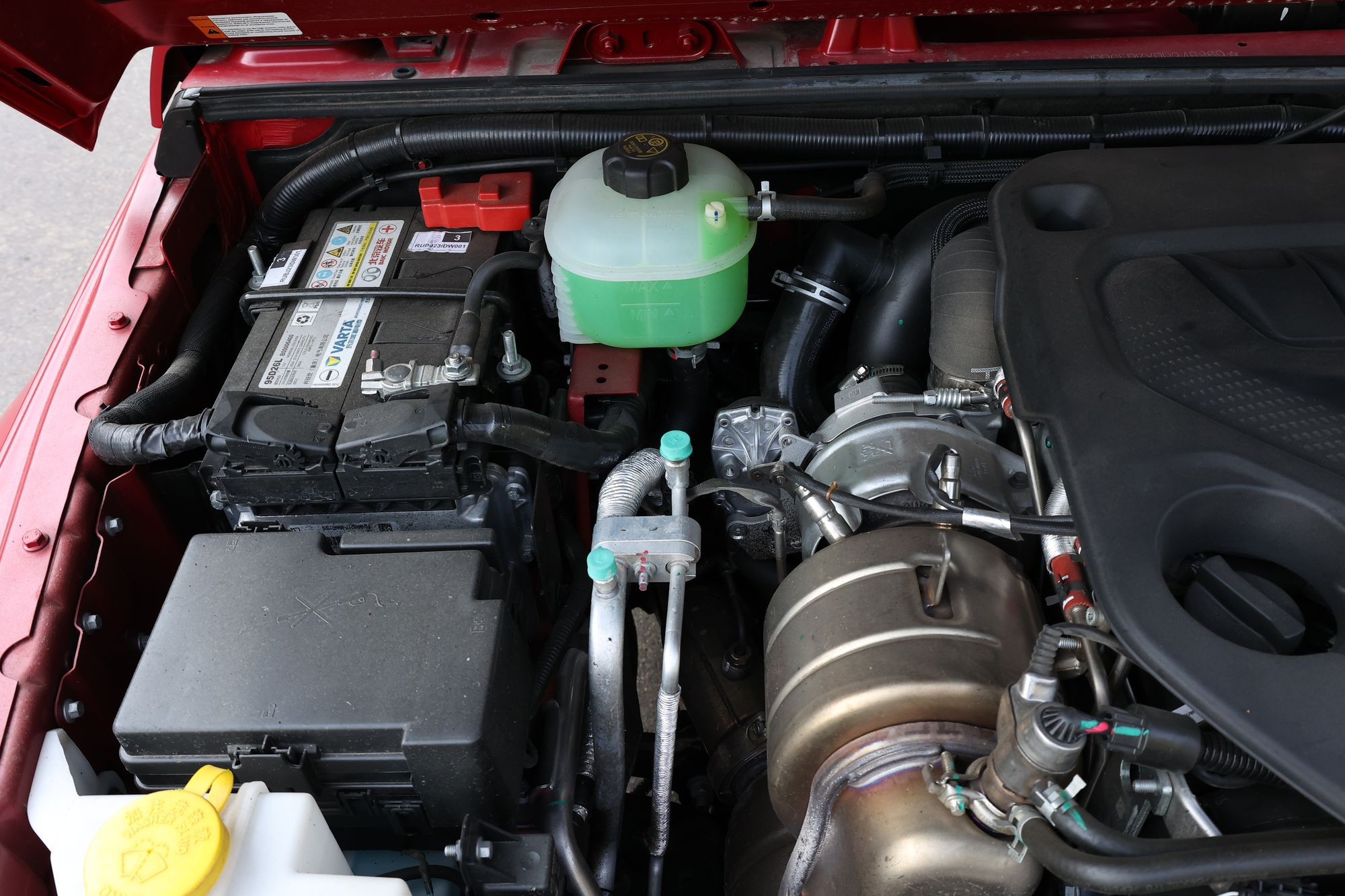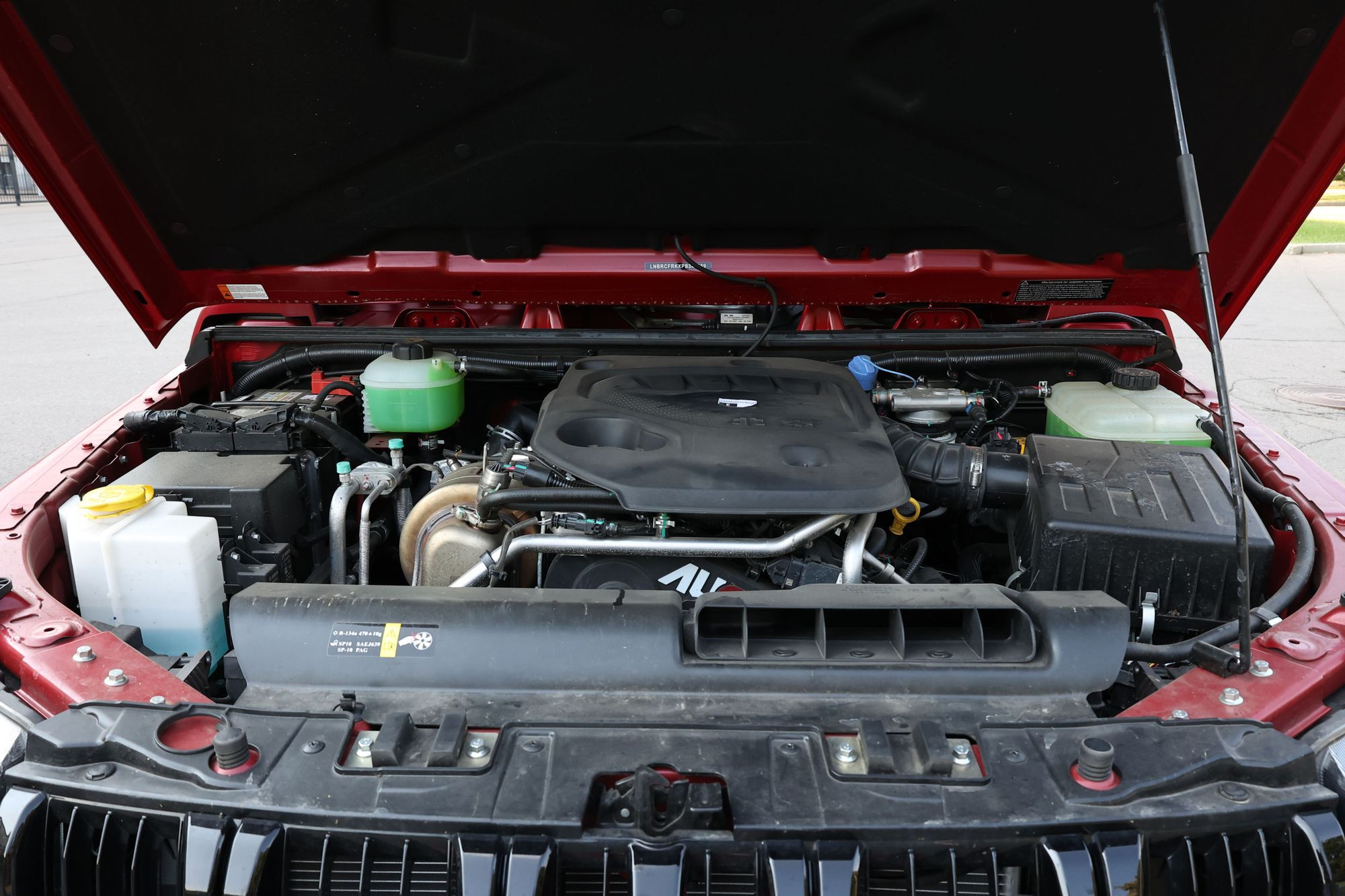 На BJ40, как и на Wrangler JL, тоже стоит 8-ступенчатый автомат ZF, и в части скорости и плавности переключений все в порядке. Но если бензиновый BJ40 с двухлитровым турбомотором мощностью 218 л.с. и крутящим моментом 380 Нм по нашим впечатлениям обеспечивал «неплохое ускорение» даже в сравнении с Wrangler, то двухлитровый же турбодизель серии 4F20TC13, устанавливаемый в том числе на пикап Foton Tunland, – это не для гонок. Мотор развивает 162 л.с., и хотя момент тут как и у бензинового мотора – 380 Нм, машине его все же маловато. В городе все окей – BJ легко стартует со светофоров и везет «с низов», но когда минует пик момента на 3500-4000 об/мин, внедорожник сникает. Помимо разницы в мощности, дизельный BJ еще и тяжелее на добрые 60 кг, так что сотню он разменивает за 14,5 с против 10,9 у бензиновой версии.