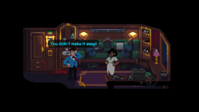 Прежде всего в игру влюбляешься из-за её визуального стиля — и окружение нарисовано чудесно, и персонажи здорово анимированы. За визуальную сторону отвечал художник, который ранее работал в Chucklefish над Wargroove и Starbound, и его профессионализм очевиден. Все персонажи, даже второстепенные, получились очень живыми: кто-то подбрасывает пенсне, когда пугается, у кого-то «прыгает» шевелюра при передвижении. Порой возникает ощущение, что даже синхронизация губ здесь есть, — странно звучит в случае с пиксельной игрой, но, как только это замечаешь, уже трудно перестать обращать внимание. Поскольку каждому герою уделили много внимания — даже безымянным посетителям казино, которые радуются победам, — к персонажам прикипаешь, и не жалко потратить время на повторные разговоры с ними в поисках решения очередной загадки.