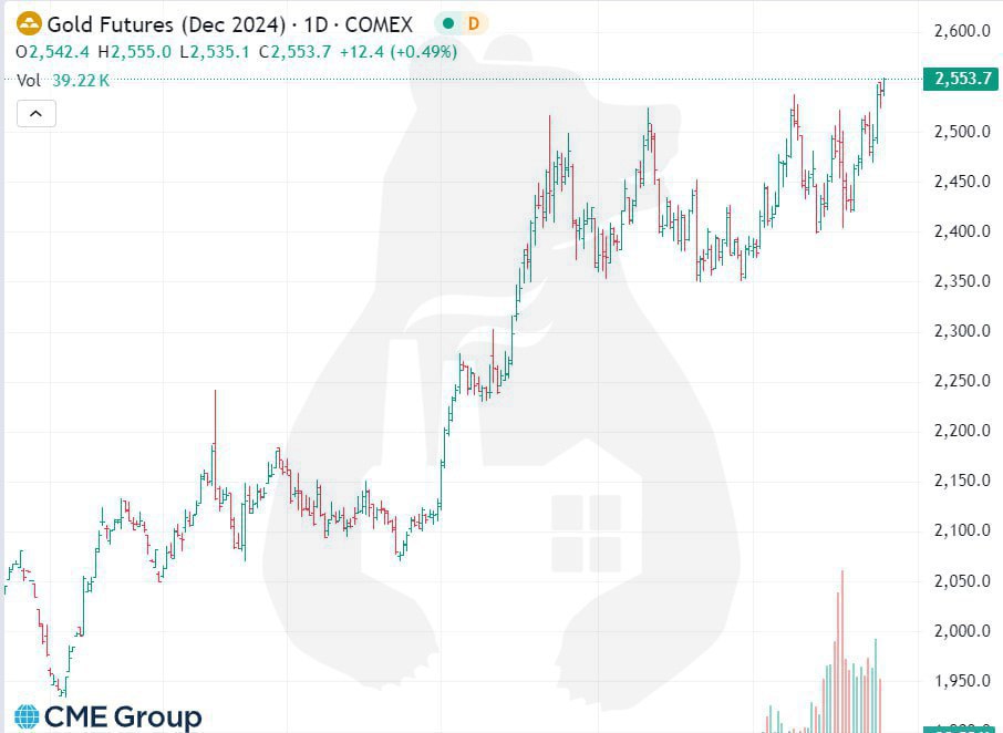 📈 Стоимость золота на рекордных значениях — декабрьский фьючерс достиг $2 554