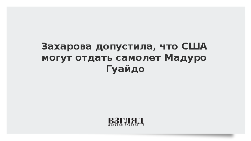 США могут отдать конфискованный самолет президента Венесуэлы Николаса Мадуро Хуану Гуайдо, чтобы выдавать бывшего лидера оппозиции за венесуэльского президента, заявила официальный представитель МИД России Мария Захарова.