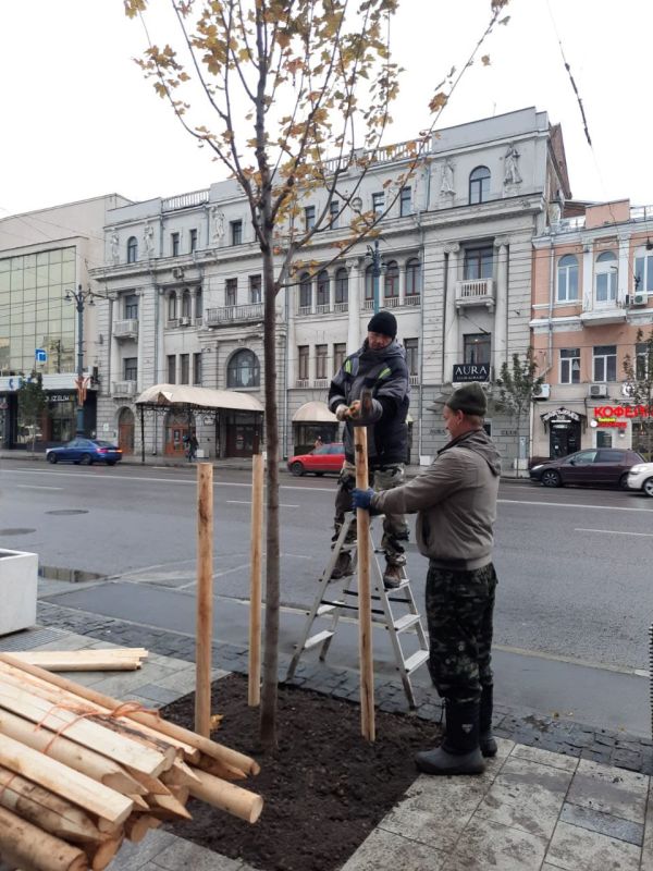 На нечётной стороне проспекта Революции специалисты повторно высадили 10 клёнов в те лунки, где они располагались ранее. Завершается установка защиты деревьев. Информация об этом появилась в телеграм-канале управления экологии Воронежа.