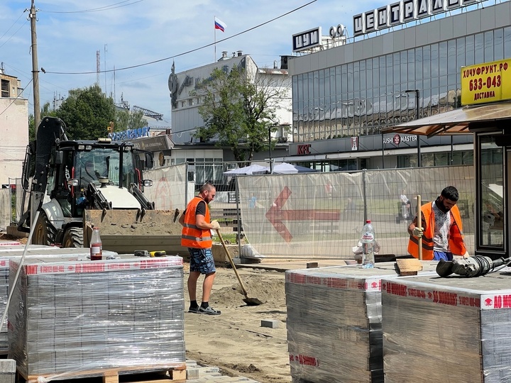 Половина работ по благоустройству улицы Октябрьской Революции в Смоленске выполнены