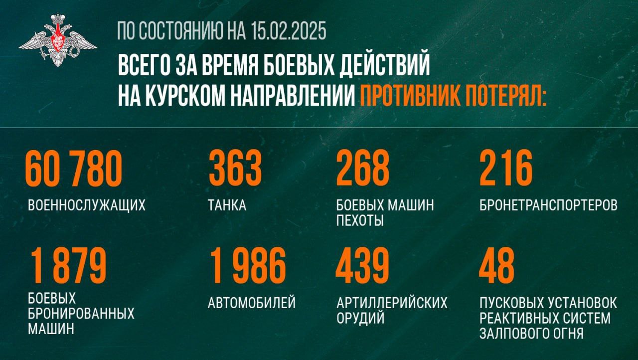 Минобороны России публикует статистику потерь украинских военизированных формирований на курском направлении с начала вторжения ВСУ в августе 2024 года.