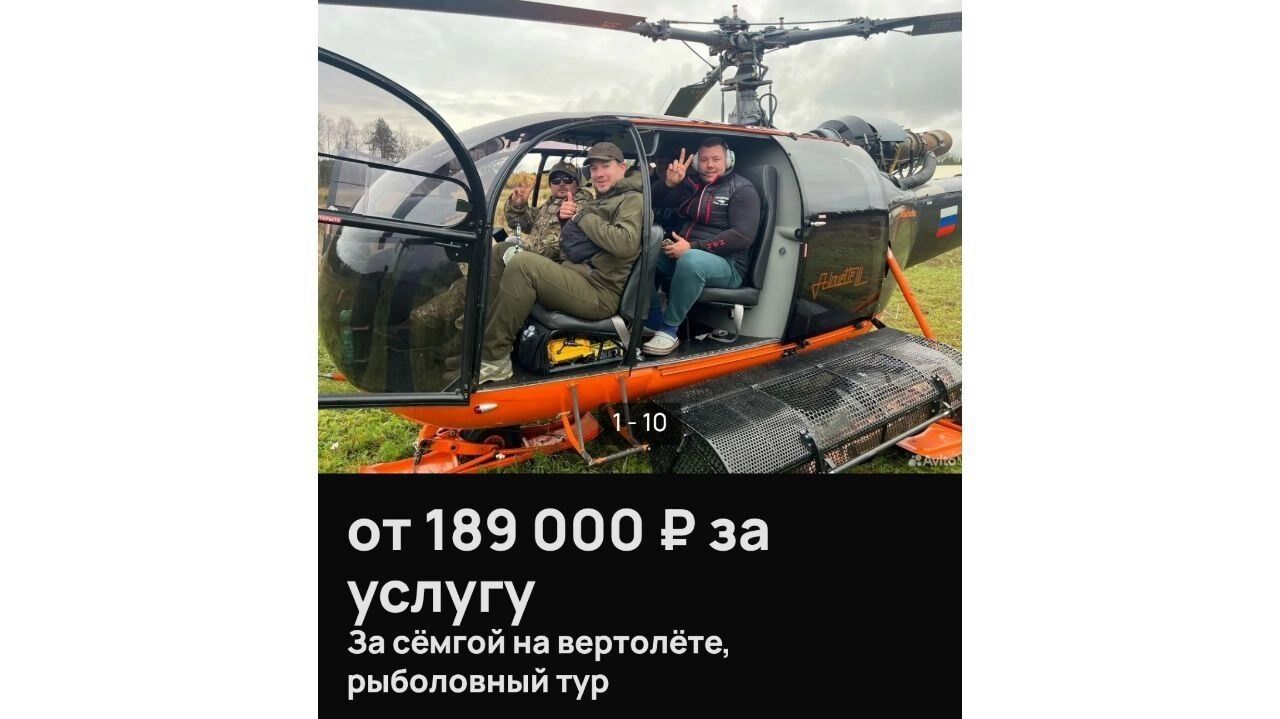 Югорчанам предлагают отправиться в тур за семгой на вертолете по заоблачным ценам. Стоимость авторских туров в зависимости от маршрута составляет до 330 тысяч рублей. Объявления об этом появились на популярной площадке по предложению услуг.