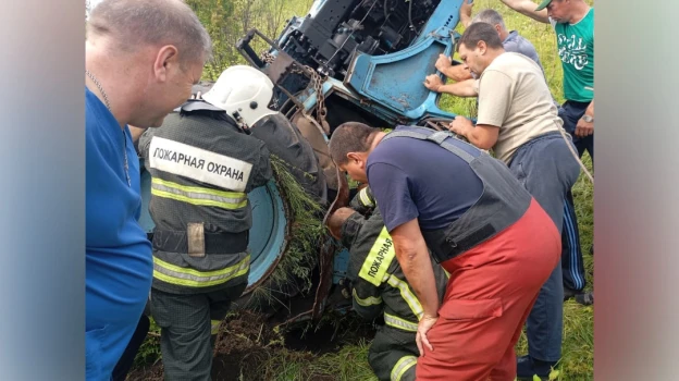 Авария произошла около 8:00 в субботу в поселке Суровский. По предварительным данным, тракторист не справился с управлением. На месте ДТП работал пожарно-спасательный расчет. Спасатели также привлекались для сбора информации.