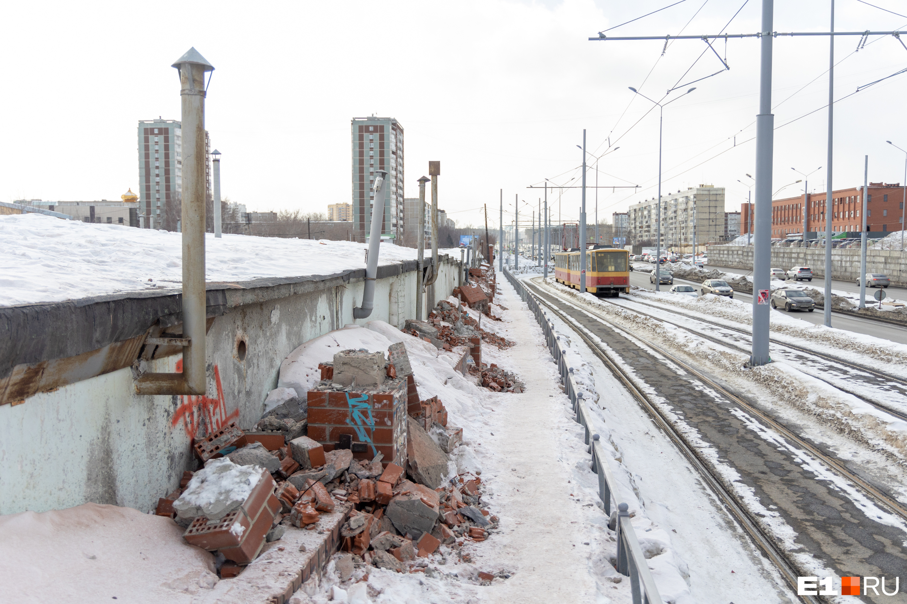 Строители трамвайной линии в Академический наконец-то начали расширять узкий тротуар на подъеме с Серафимы Дерябиной на Волгоградскую. Проблему решили радикально — в жертву принесли кирпичный забор, отделяющий пешеходную зону от гаражного комплекса. Таким образом удастся «выгрызть» для прохожих еще 1,5–2 метра пространства.