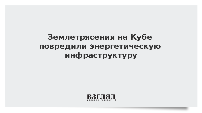 Землетрясения, произошедшие на востоке Кубы, нанесли ущерб электроэнергетической инфраструктуре, передает ТАСС. Кубинская национальная энергетическая компания сообщила, что в результате подземных толчков в провинциях Сантьяго-де-Куба и Гранма были повреждены трансформаторы и кабели.