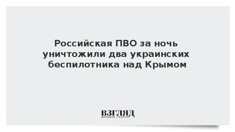 Российская система противовоздушной обороны за ночь сбила два украинских беспилотных аппарата в небе над Крымом, сообщает Минобороны России.