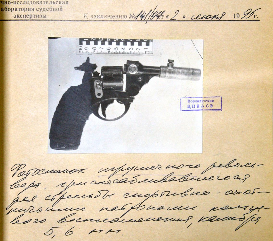 Криминалисты установили, что стреляли из охотничьего ружья 16-го калибра. Версия о том, что нападавшие использовали автомат, не подтвердилась. Как выяснилось позже, выскочивший из машины бандит просто стрелял с двух рук — из охотничьих обрезов. Как в гангстерском боевике.