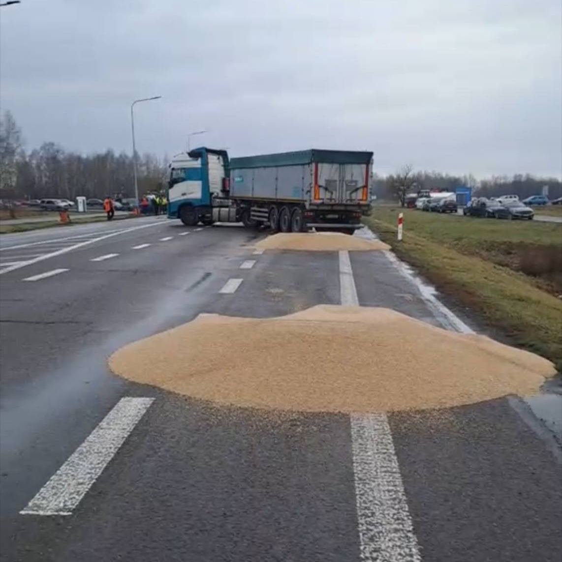 Мэр Львова назвал «пророссийскими провокаторами» польских фермеров, которые высыпали украинское зерно из грузовиков на границе.