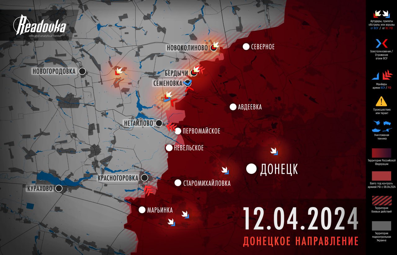 За безопасность ДНР — детальное рассмотрение ситуации на Донецком направлении на карте Readovka за 12 апреля