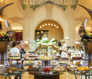 Бранч в ресторане «Европа» – это устрицы, икра, игристое, фирменные блюда и живая музыка. На столе появятся горячие и холодные закуски, салаты, икра, морепродукты, мясные деликатесы и ассорти сыров – в меню бранча около 80 блюд русской, европейской и азиатской кухни. Трапеза продолжается несколько часов, причем количество подходов и заказов в баре не ограничивается.