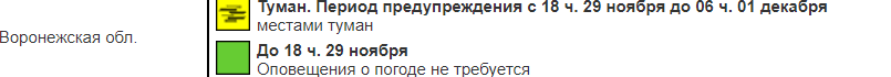 Предупреждение о явлении будет действовать с 18:00 29 ноября до 6:00 1 декабря.