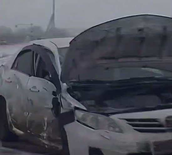 Авторы видео поделились кадрами, на которых видно, что два автомобиля находятся в кювете, ещё один стоит разбитый на трассе.