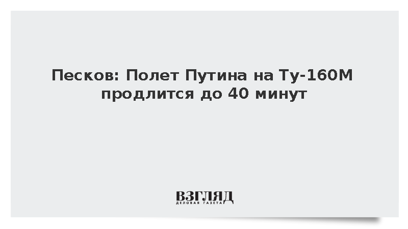 Полет президента Владимира Путина на модернизированном стратегическом ракетоносце Ту-160М продлится до 40 минут, сообщил пресс-секретарь главы государства Дмитрий Песков.