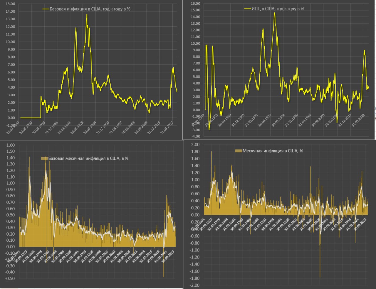 Учитывая нездоровое рвение ФРС рубануть рубильник неограниченного бабла, повторение 70-х вполне возможно, когда за замедлением цены снова пошли на рекорды.