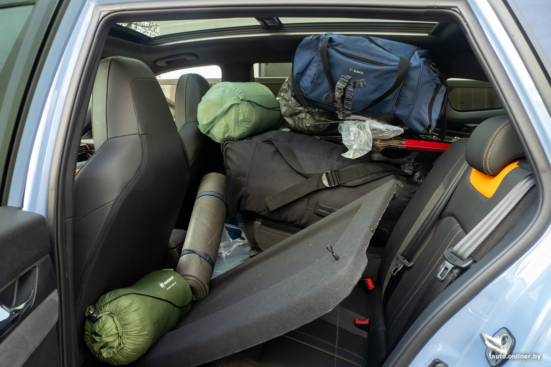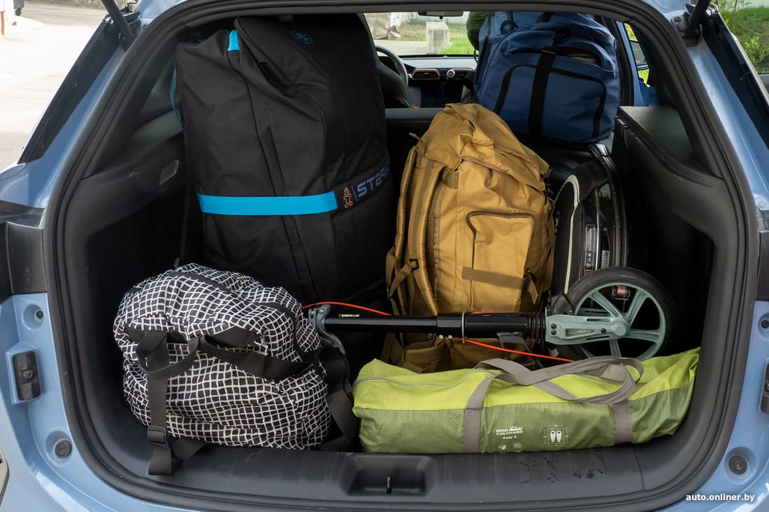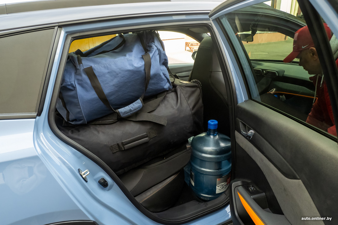 Буквально десять минут, и рядом с машиной ничего не осталось, все поместилось в багажнике и салоне. Правда, вдвоем на заднем диване будет тесно — из-за внушительной стопки вещей справа. Причем часть из них вполне могла бы поместиться в багажнике. Следует признать: это не самая плотная компоновка. Зато все на борту.