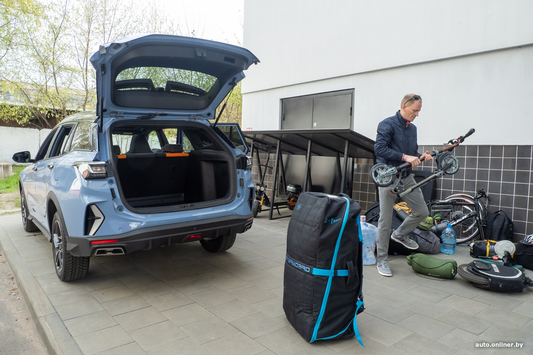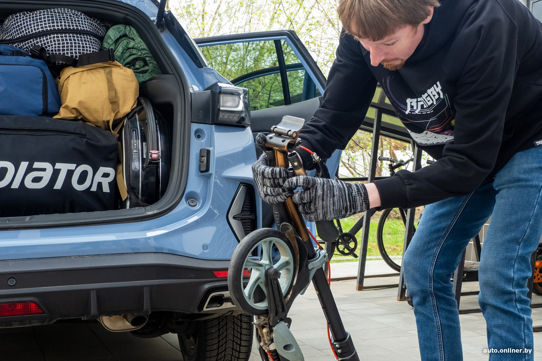 А не пытаемся ли мы сейчас сделать то же самое? Горка из вещей рядом с автомобилем выглядит внушительно. Среди них есть даже самокат (хорошо еще, что не электрический) и моноколесо (спасибо, что относительно небольшое).