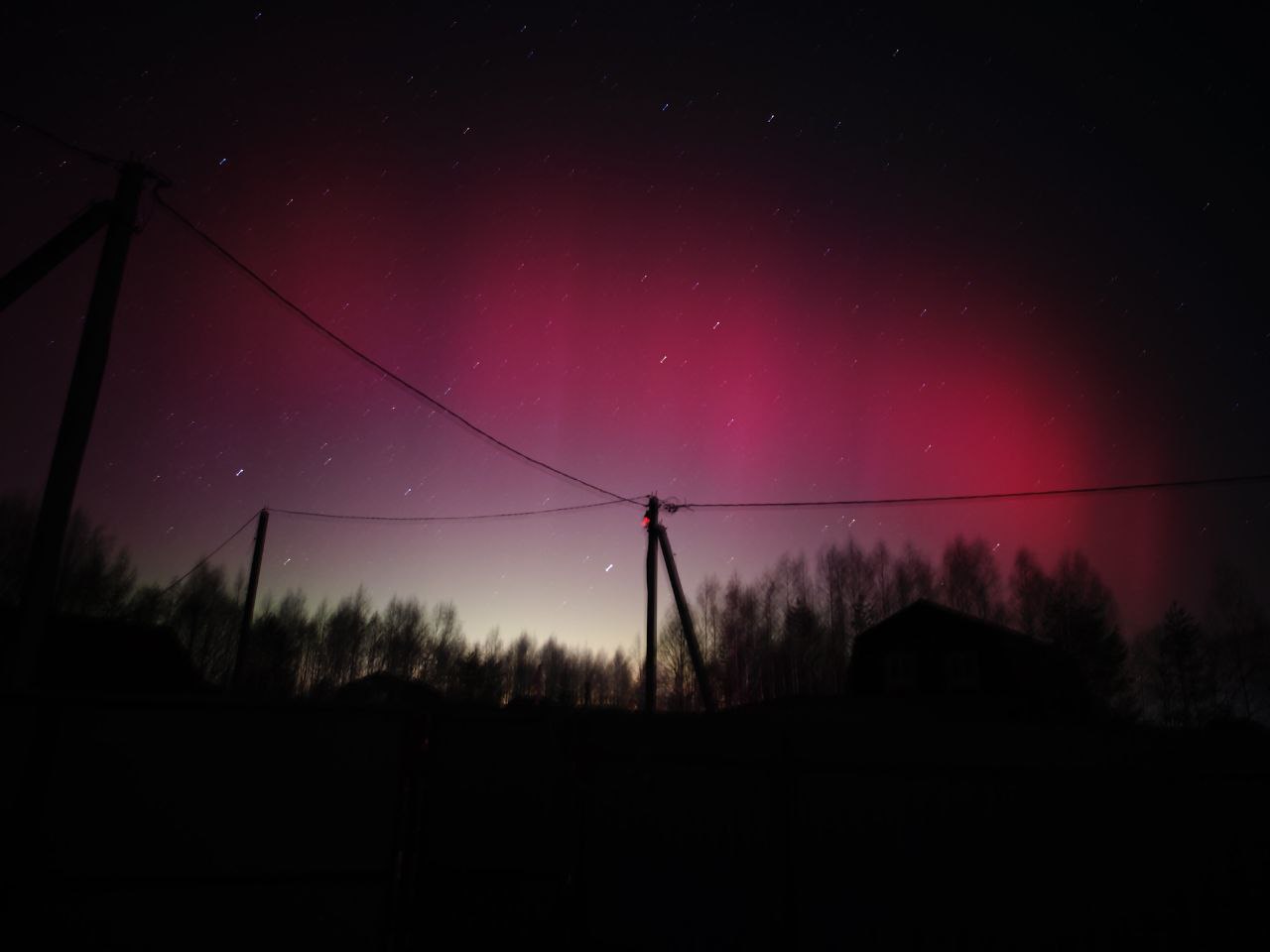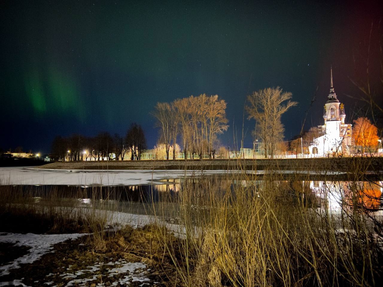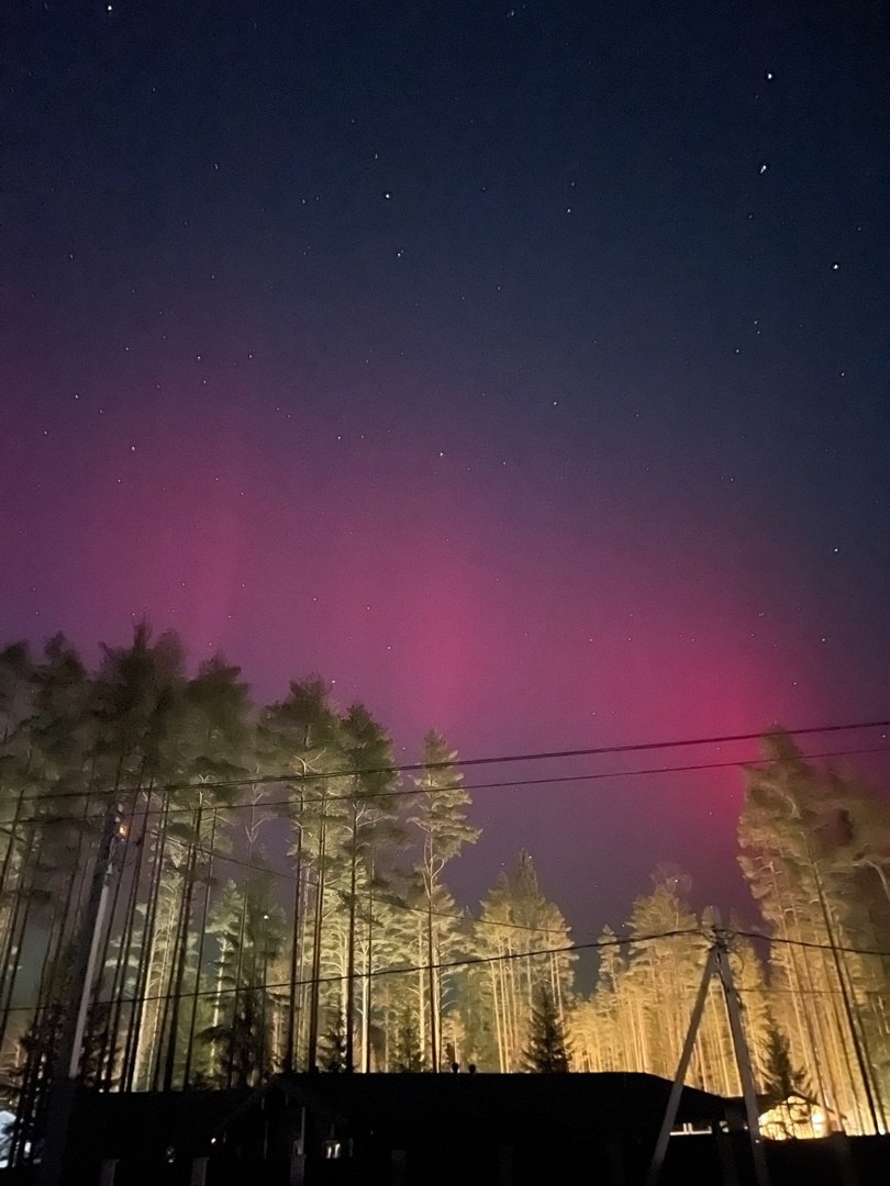 Яркое северное сияние на фоне магнитной бури наблюдают жители разных городов России.
