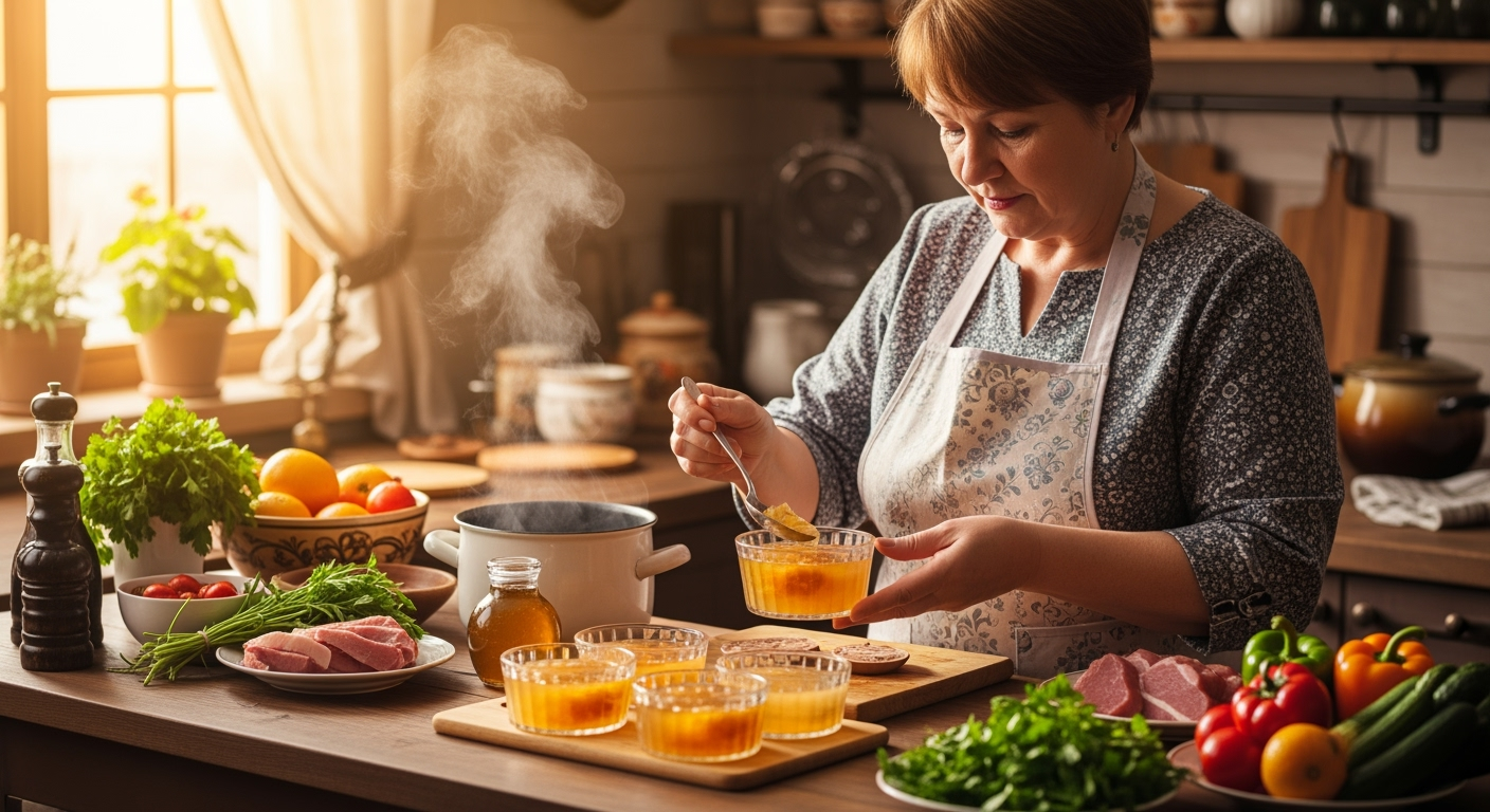 Традиционные методы приготовления холодца, унаследованные от наших предков, не предусматривали никаких добавок. В деревнях, где держали скотину, процесс был прост: мясо долго варили, отделяли от костей, приправляли чесноком и солью, а затем разливали. Такой холодец всегда застывал сам по себе, радуя густотой и насыщенным вкусом.