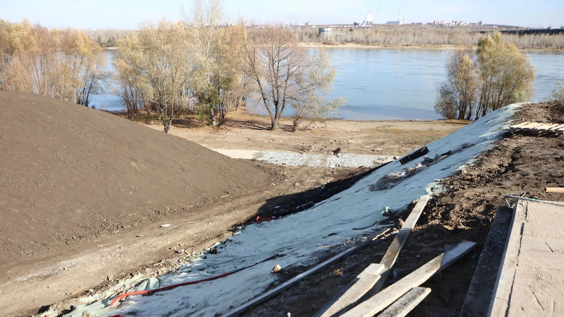 Проект реализуется в рамках национального проекта «Инфраструктура для жизни» при финансировании свыше 248 миллионов рублей. Территория площадью более 7 гектаров станет многофункциональной зоной отдыха: здесь запроектированы спортивные и детские игровые площадки, два уровня обзорных платформ с панорамным видом на реку Обь, удобные спуски к воде и причал. Особое внимание уделено экологической устойчивости — откосы укреплены с помощью геотекстиля и георешётки, что предотвратит размывание почвы.
