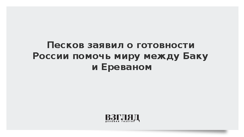 Москва выразила готовность при необходимости содействовать заключению мирного соглашения между Арменией и Азербайджаном, которые, по оценке Кремля, уже близки к финальному этапу переговоров.