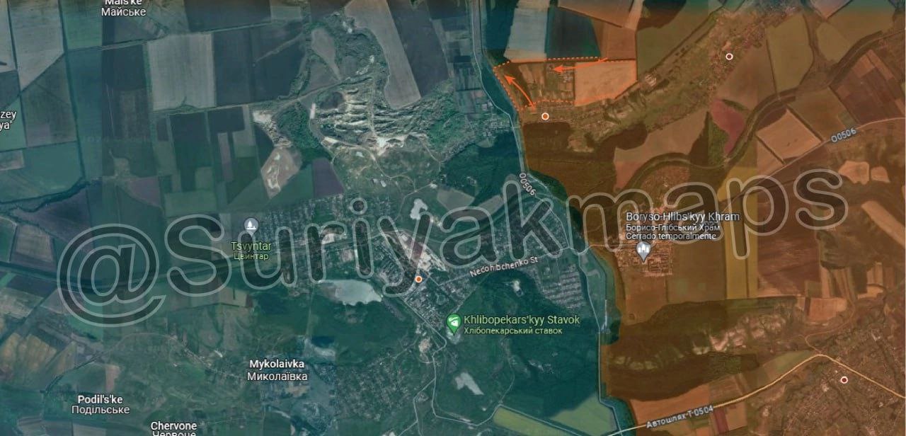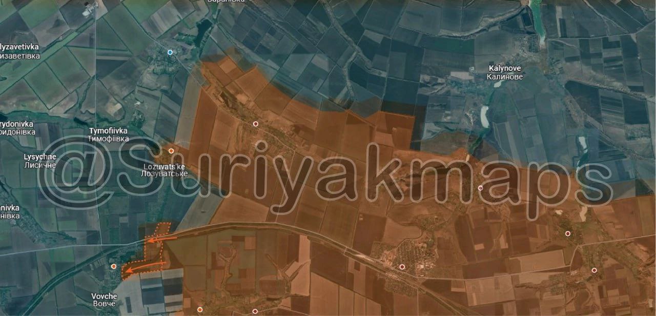 4. Ситуация к востоку от Часова Яра: Склады и холм, а также прилегающие позиции водного канала к северу от восточной части Калиновки перешли под контроль российской армии.