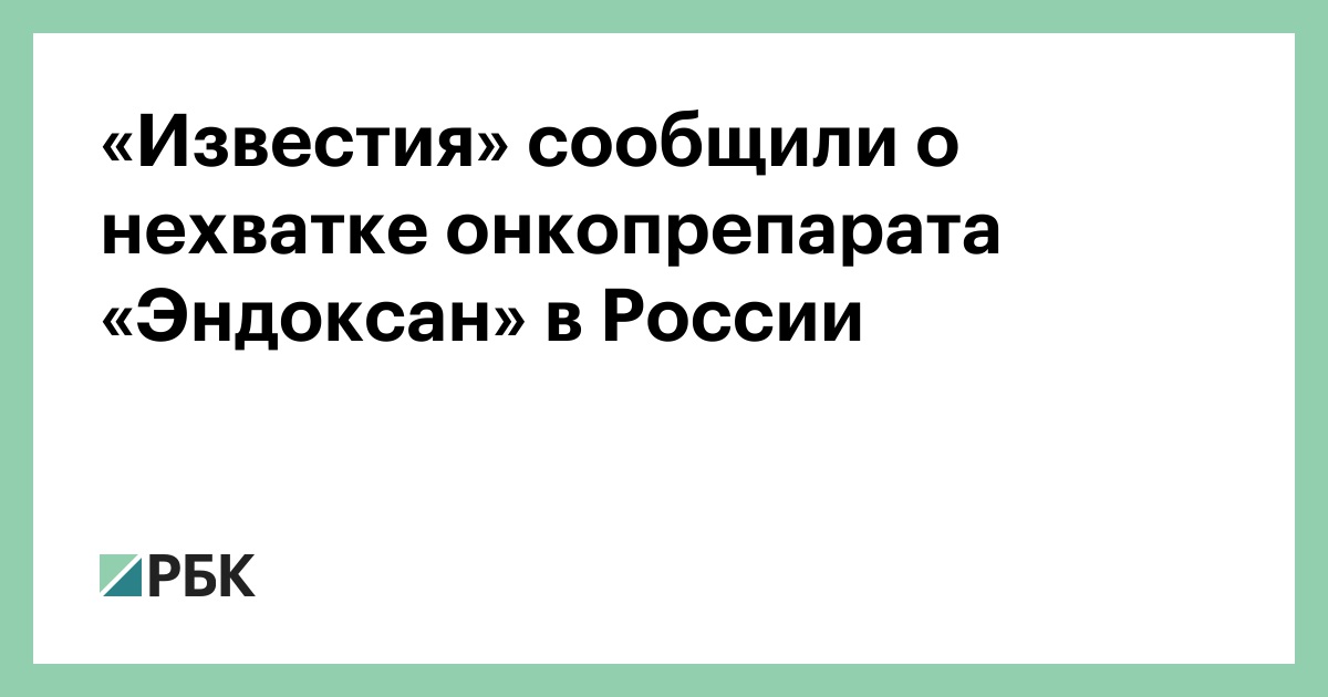 Как минимум в 50 российских регионах пропал зарубежный препарат «Эндоксан» для терапии онкологических и онкогематологических заболеваний, отсутствуют и его российские аналоги, пишут «Известия». Он содержит вещество циклофосфамид и выпускается в форме таблеток или порошка.