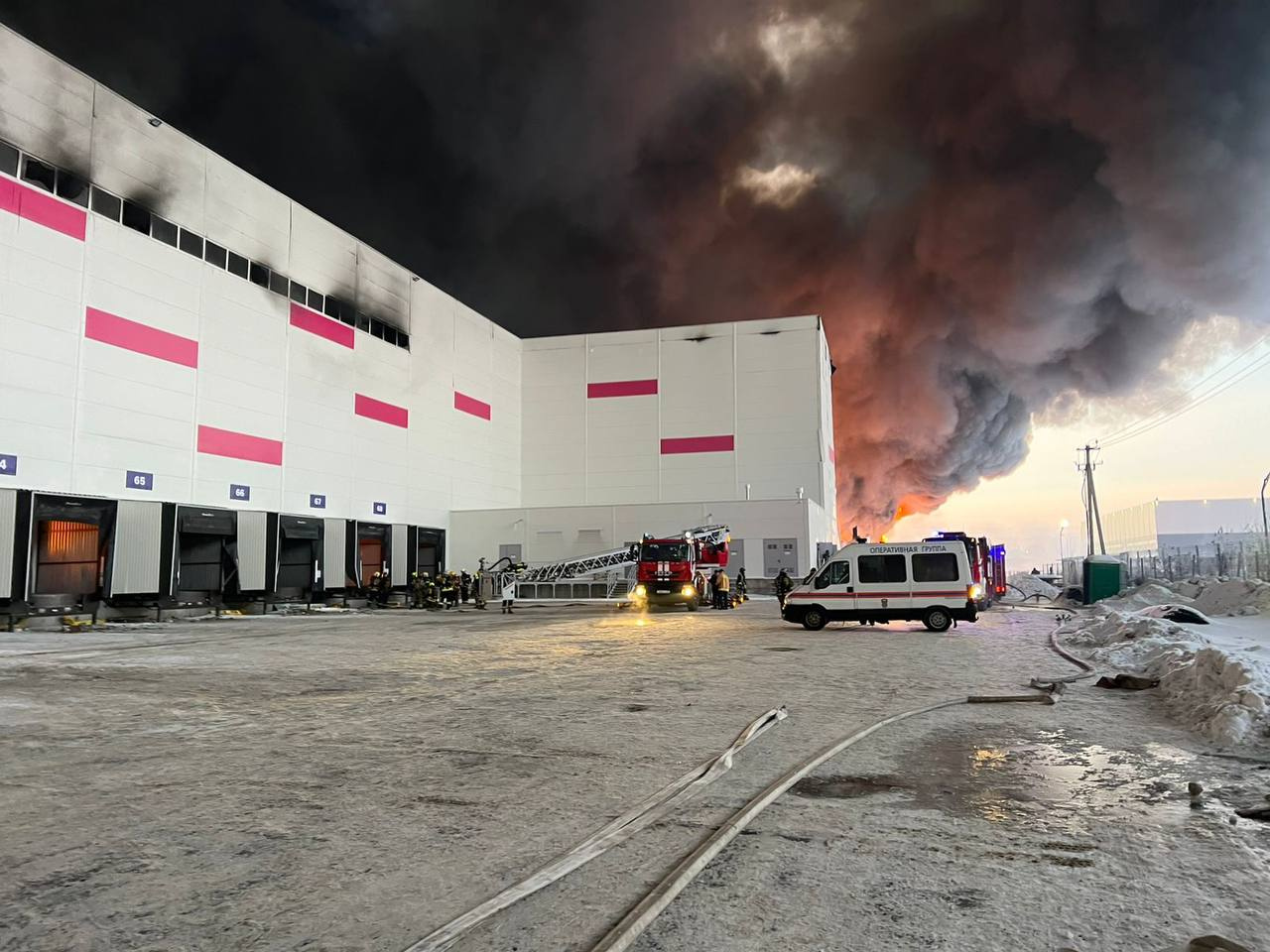 Прокуратура Пушкинского района Петербурга начала проверку после возгорания на складе маркетплейса Wildberries в Шушарах 13 января. Кадры из эпицентра публикует МЧС.