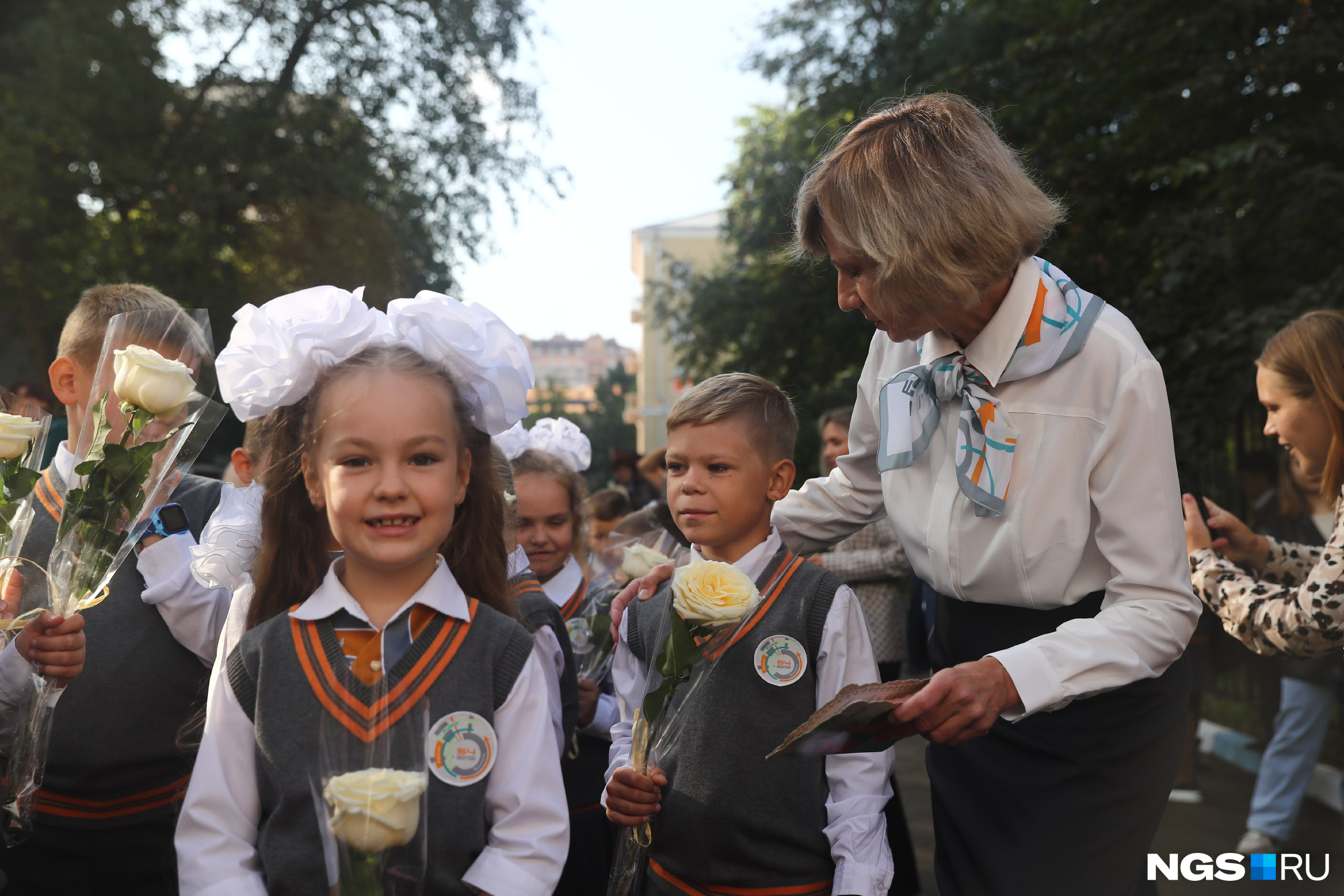 Дед Мороз, зевающие первоклашки и прокурорский класс: 20 лучших фотографий с Первого Сентября в Новосибирске