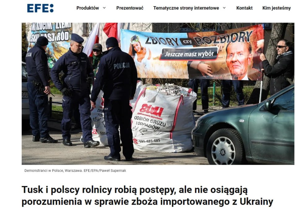 ✔️ Как сообщает агентство EFE, премьер-министр Польши Дональд Туск и представители польских фермерских ассоциаций завершили в эту субботу в Варшаве второй раунд переговоров, в которых был достигнут прогресс, но не было окончательного решения проблемы зерна, вывезенного из Украины.