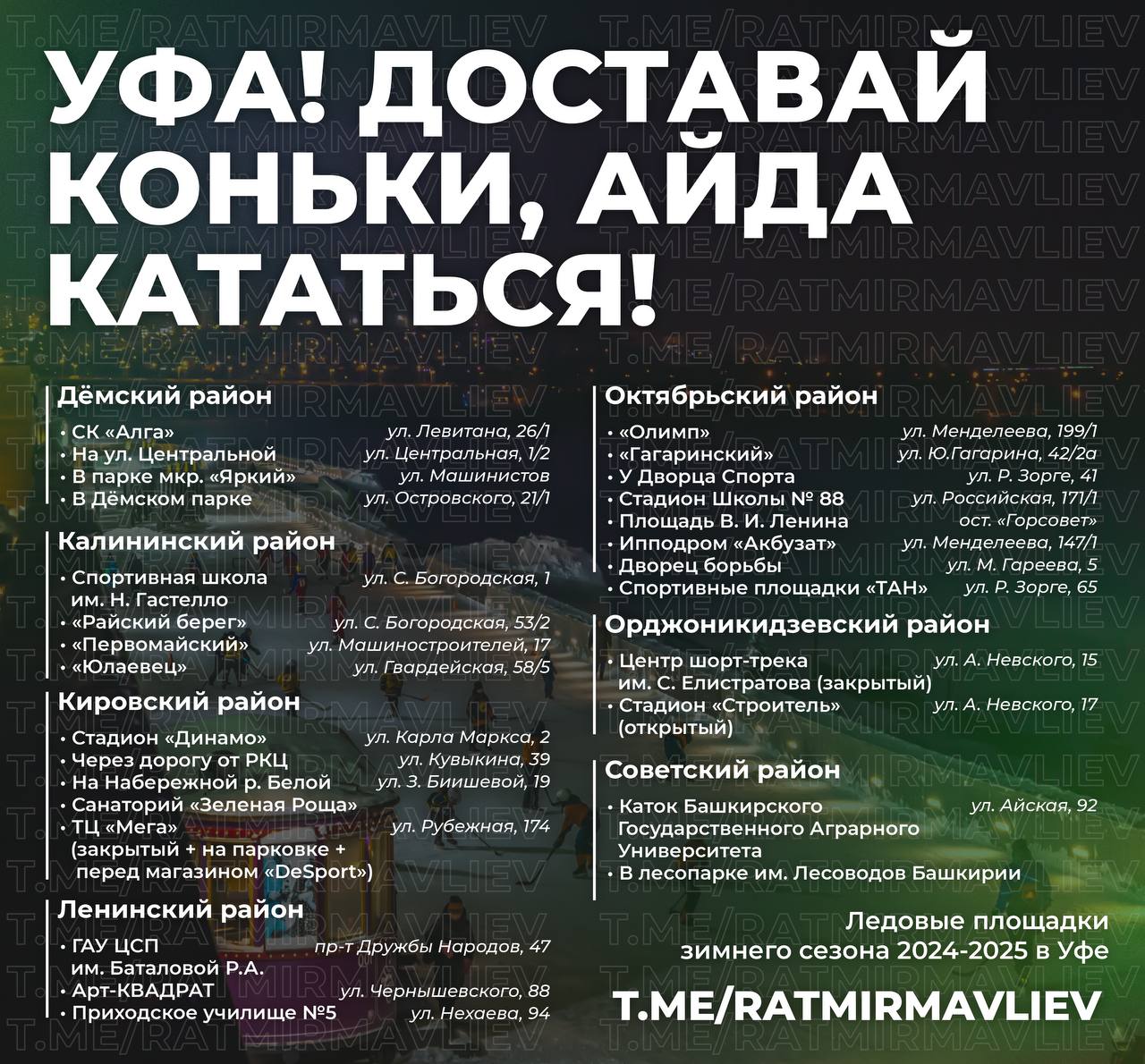В новом зимнем сезоне в Уфе будут функционировать 30 ледовых катков