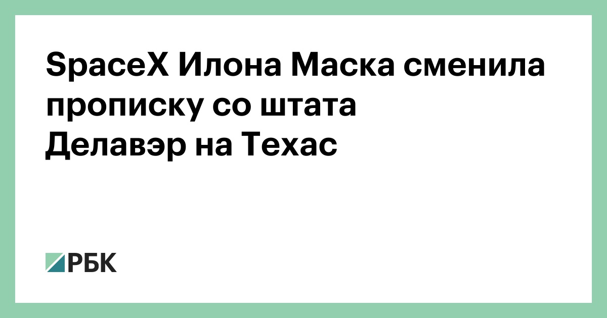 Американский предприниматель Илон Маск заявил, что у его компании SpaceX сменился штат регистрации: с Делавэра на штат Техас.