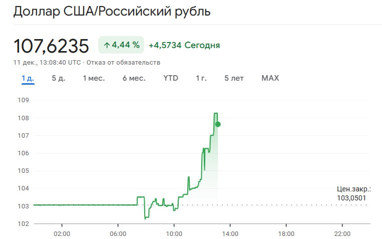 📈Доллар вновь превысил отметку в 107 рублей, — данные биржи