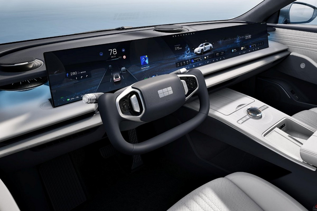 Главные фишки в салоне – штурвал вместо традиционного руля и единый дисплей во всю ширину передней панели (экран – с разрешением 8K).