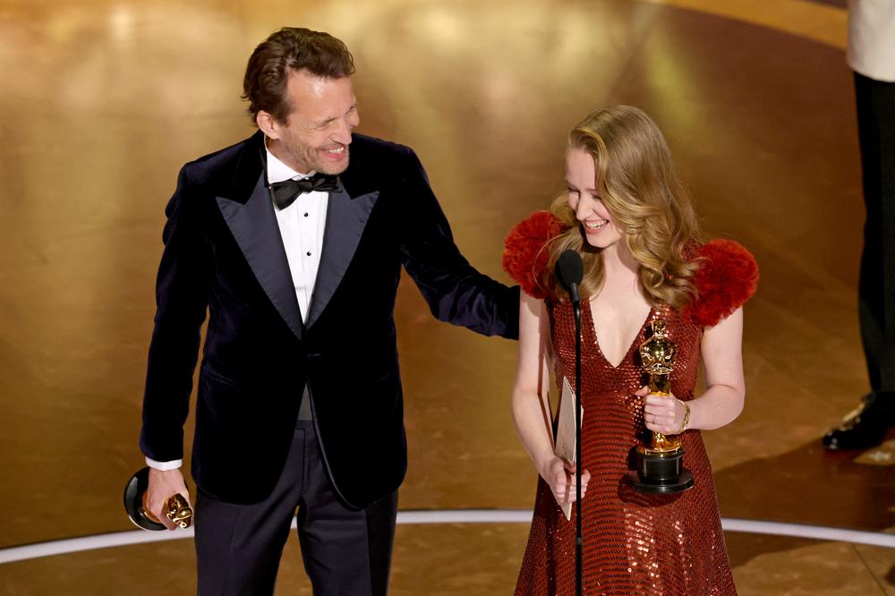 La comédie noire de Sean Baker termine cette soirée avec cinq statuettes sur les six auxquelles il pouvait prétendre. «Ce film a été produit avec le sang, la sueur et les larmes de tous les gens qui m’entourent. Vive le cinéma indépendant ! Si vous voulez de meilleurs films indépendants, il faut en produire plus», a enjoint le réalisateur couteau-suisse, également scénariste et monteur. Cette remontada d’Anora s’est accompagnée d’un des plus grands retournements de situation de ces 97e Oscars. Son héroïne Mikey Madison, 25 ans, a damé le pion à la favorite de la saison Demi Moore, qui portrait la fable horrifique de Coralie Fargeat, The Substance.