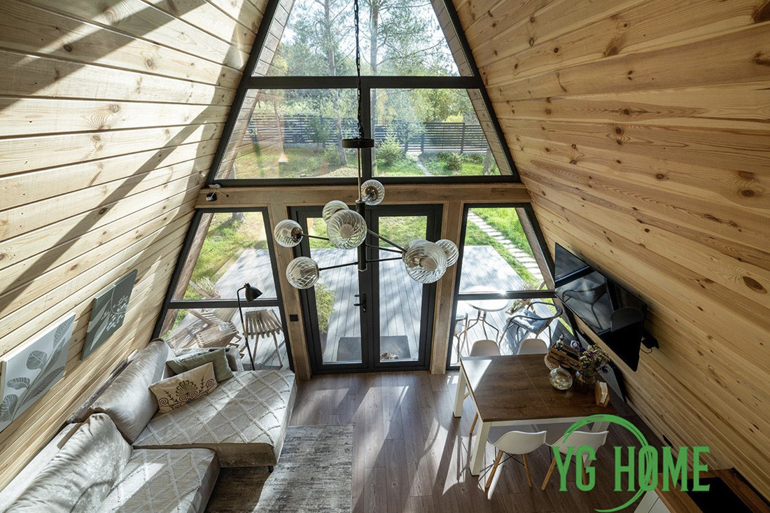 «Треугольник» готов к жизни: есть отделка, мебель, остается только разложить свои вещи. Общая площадь домика — 64 «квадрата» (с учетом «воздушного» второго этажа).