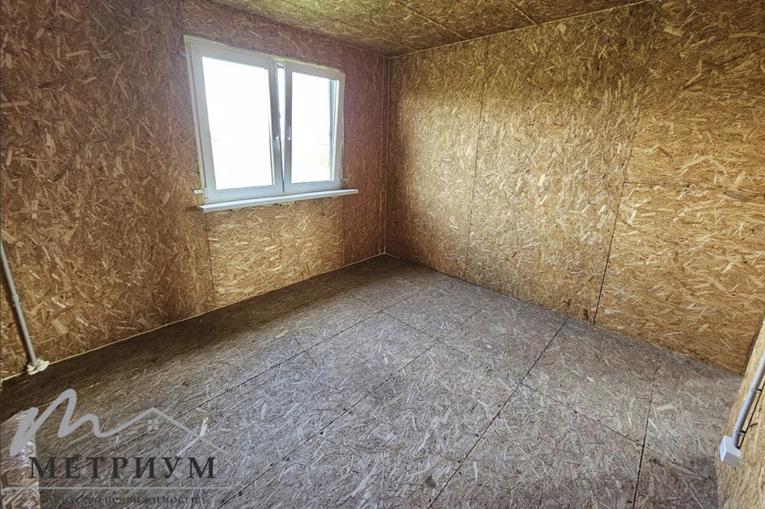 «Наполнение» первого этажа следующее: кухня-гостиная на 23 «квадрата», две спальни по 11 метров и санузел с небольшим окошком. Есть также терраса под общей крышей, но ее надо обустраивать. На втором этаже — просторное помещение без перегородок.