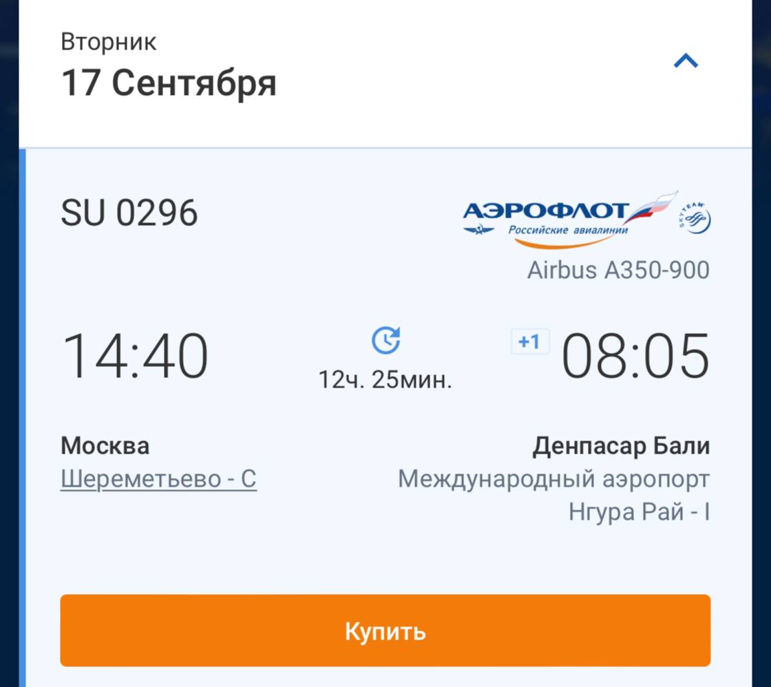 🇮🇩⚡️ Прямые рейсы на Бали появились в расписании на сайте «Аэрофлота»!