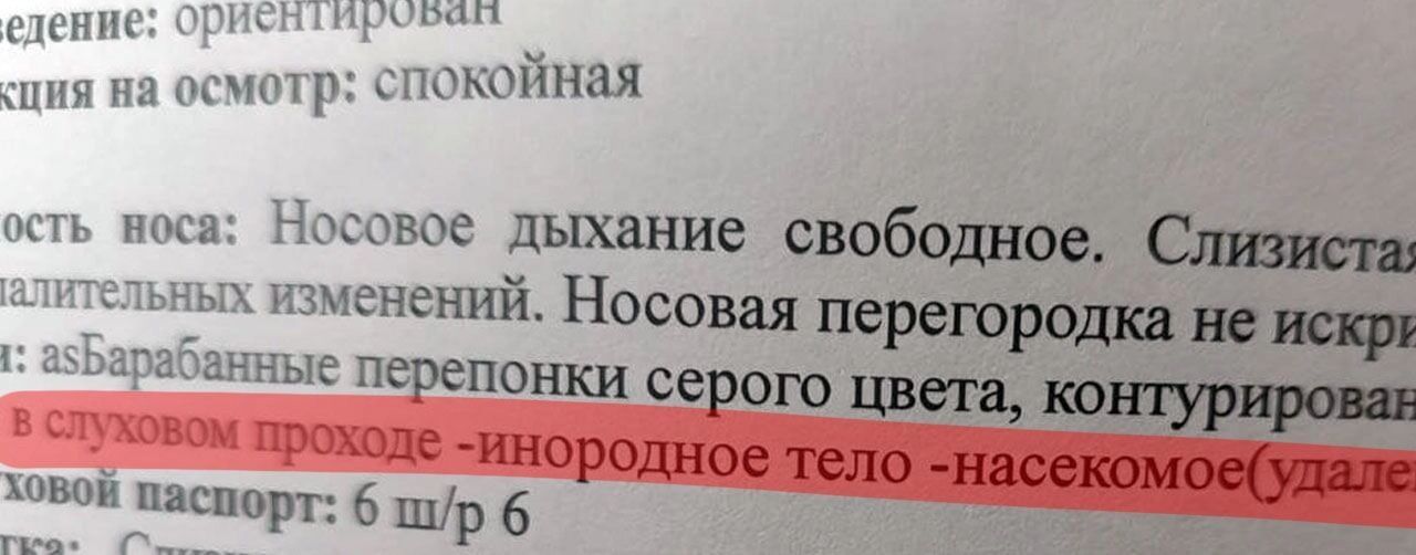 Недельный дискомфорт в ухе обернулся для жительницы Уфы неожиданным открытием. Изначально женщина предположила, что в слуховой проход залетела мелкая мошка, вызывая неприятные ощущения. Однако позже она начала отчётливо слышать подозрительные шорохи — свидетельство того, что «гость» не просто находился там, а активно обустраивал своё временное жилище.