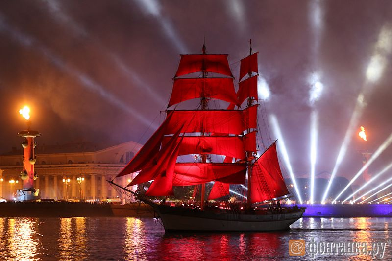 Прямую трансляцию концерта и водно-пиротехнического шоу с проходом брига «Россия» можно будет посмотреть в эфире Пятого канала. Начало в 22.00. Фейерверк и проход брига «Россия» запланирован на 00.40.