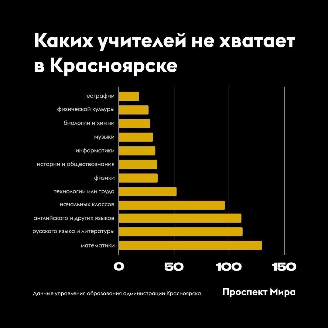 Эксперты считают, что проблема нехватки педагогов в России находится на острой отметке. По данным Минпросвещения РФ на 2024 год, разница между количеством штатных мест и работающих учителей составляет почти 600 тысяч: из 1,6 миллиона ставок занят только миллион. Особенно остро ощущается дефицит учителей начальных классов — не хватает 100 тысяч специалистов, русского языка и литературы — 80 тысяч, математики — 73 тысячи, иностранных языков — около 60 тысяч.