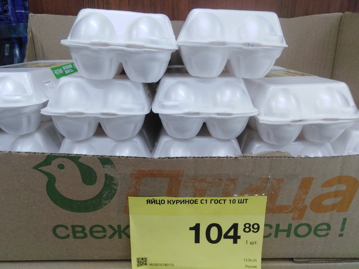 Если верить Саратовстату, на третьей неделе апреля куриное яйцо подешевело на рубль, в среднем, до 113,9 рублей за десяток. Однако год назад, в апреле 2023-го, яйцо стоило 73,4 рубля.