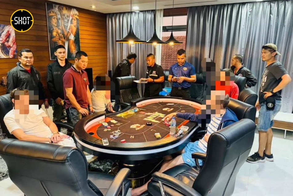 Полиция ворвалась на виллу накануне — после того как местные слили информацию, что какие-то русские играют там в карты. Сотрудники заметили россиянина на байке, припарковавшегося у дома, и проследили за ним до второго этажа. Там четверо парней играли в покер и покуривали кальян. Всех игроков увезли в отдел полиции. С места изъяли карточный стол, две колоды карт, 88 фишек на сумму около 356 тысяч бат (около 900 тысяч рублей) и табак для кальяна.