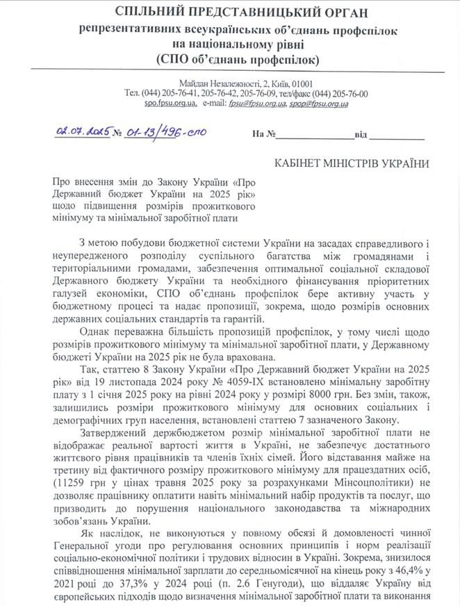 Как-то малозаметно профсоюзы Украины проинформировали Кабмин, что утвержденный госбюджетом размер минимальной зарплаты на 2025 год не отражает реальной стоимости жизни в Украине и не обеспечивает достаточного жизненного уровня работников и членов их семей.